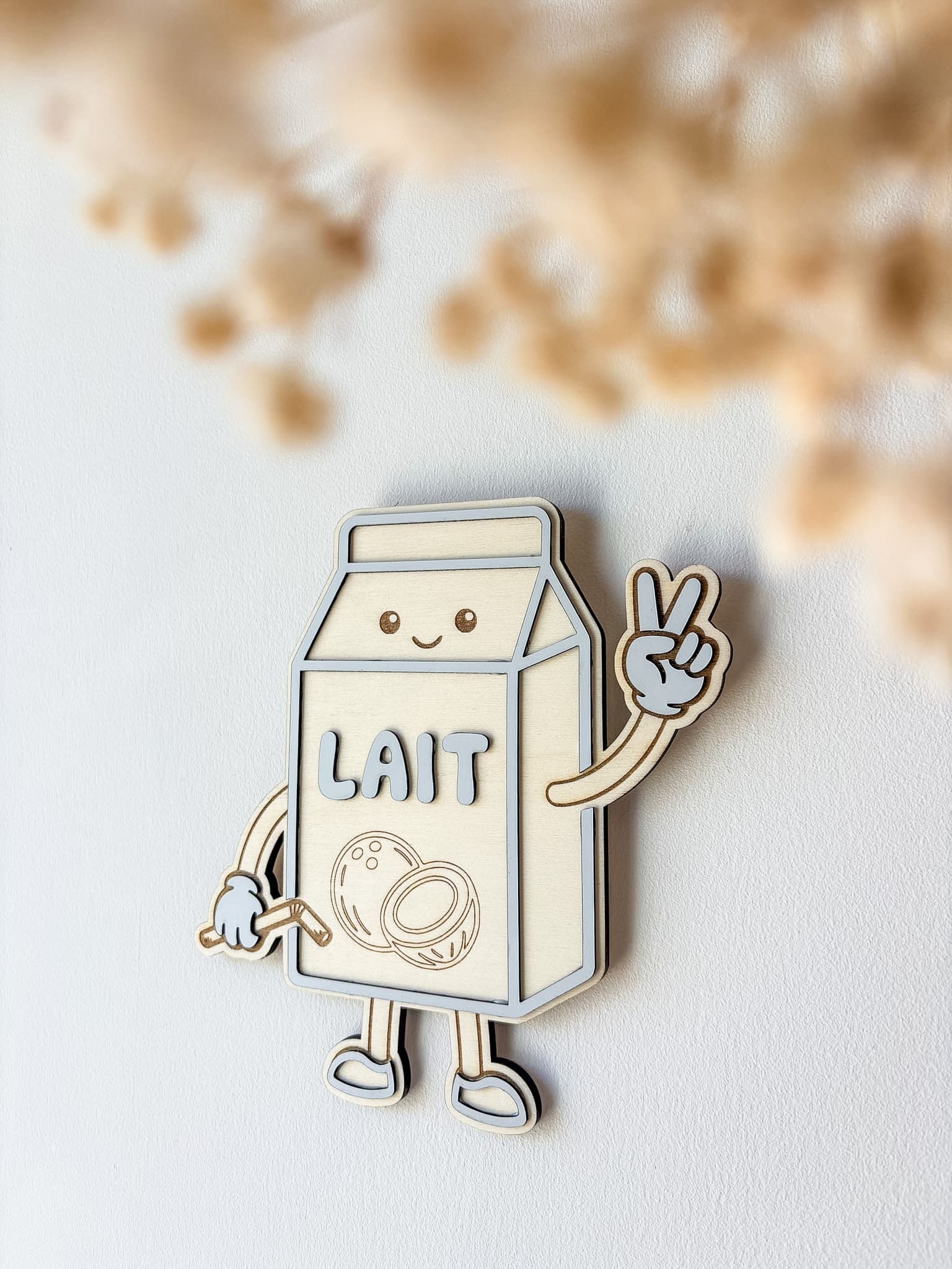 Mettez un grand sourire (et une touche de fun !) dans votre cuisine avec ma décoration murale Brique de Lait bois déco ! C’est le petit clin d’œil humoristique parfait pour les intolérants au lactose, les amoureux du végétal, ou tout simplement pour apporter une note pop et joyeuse à la décoration de votre cuisine ! Pour sublimer la gravure, le mot « LAIT » est découpé en plexiglas brillant et fixé en relief pour un magnifique effet 3D et un joli contraste de matières.