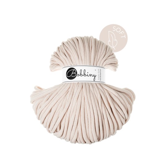 La corde macramé coton tressé soft Bobbiny – 8mm est idéale pour les projets nécessitant un volume généreux et une structure solide. Fabriquée en coton recyclé certifié Oeko-Tex, elle est douce au toucher, résistante et facile à travailler. Son diamètre de 8 mm est parfait pour des créations grandes et imposantes : suspensions murales XXL, paniers, tapis, couronnes décoratives, ou encore accessoires de mode originaux.