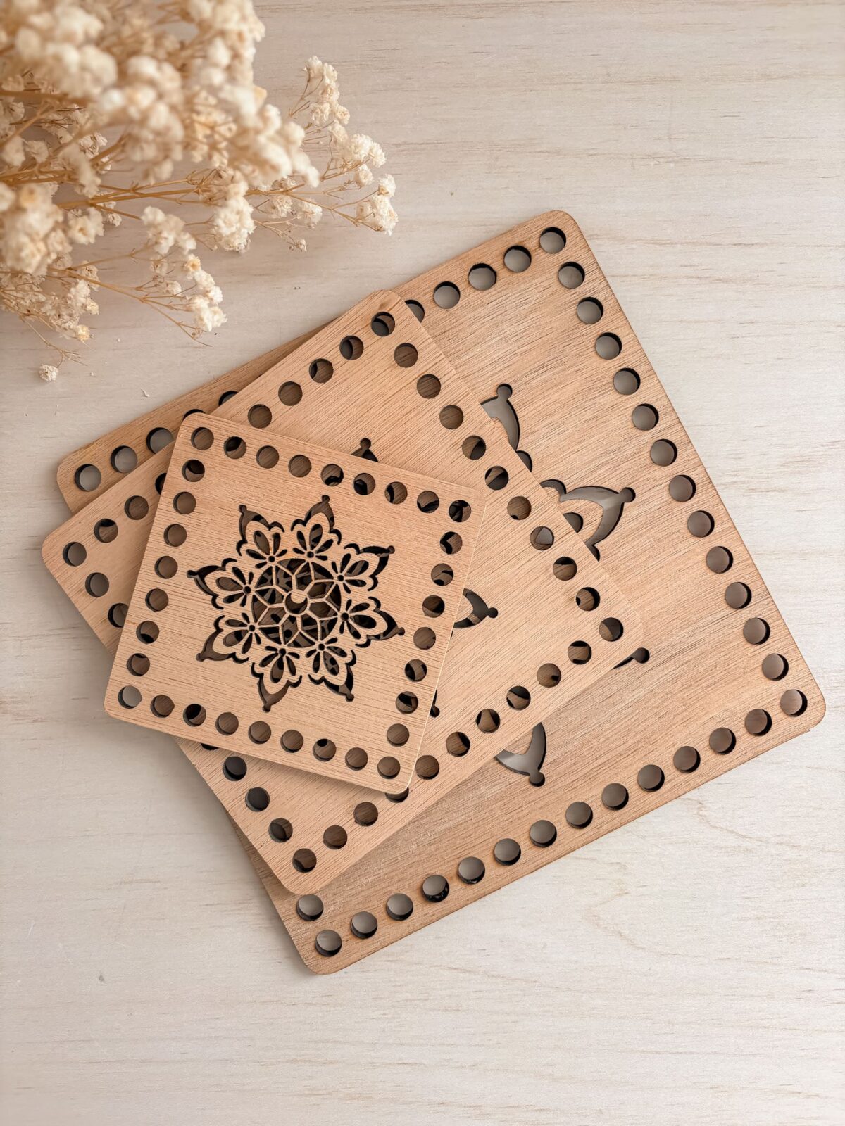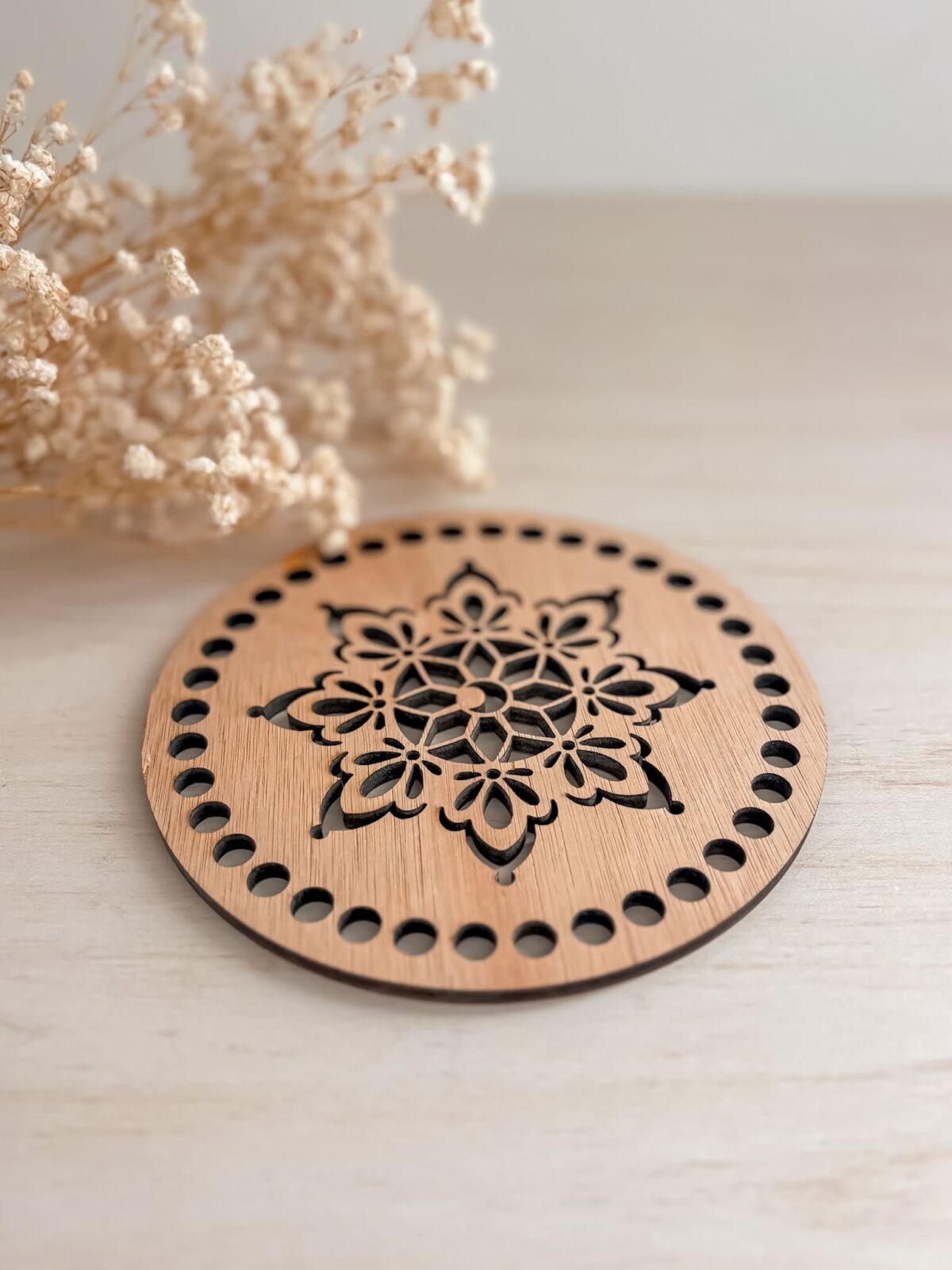 - Design « Ajouré » : Contrairement à une simple gravure, la découpe traverse le bois, offrant un jeu de transparence parfait pour le DIY et le macramé.