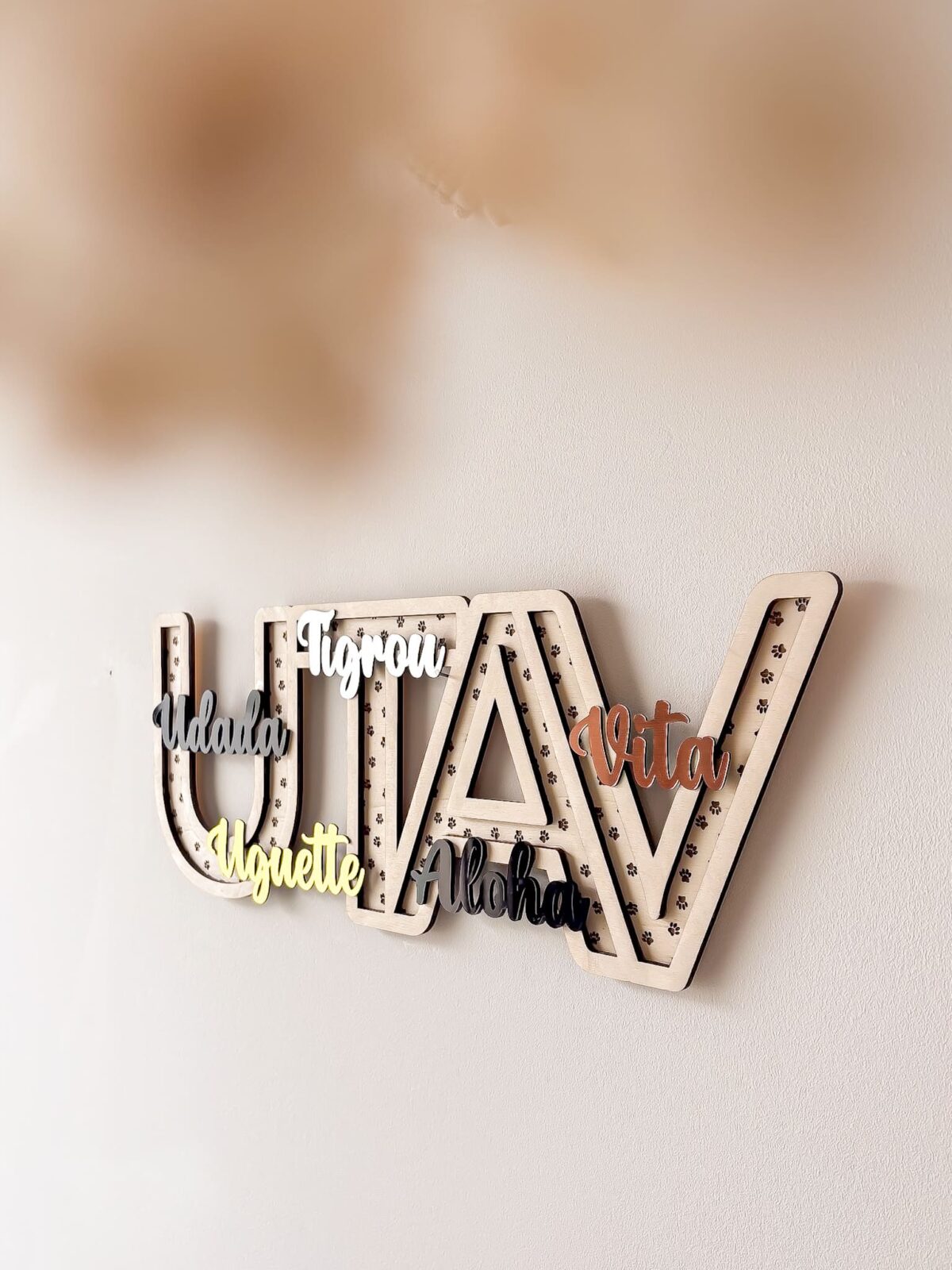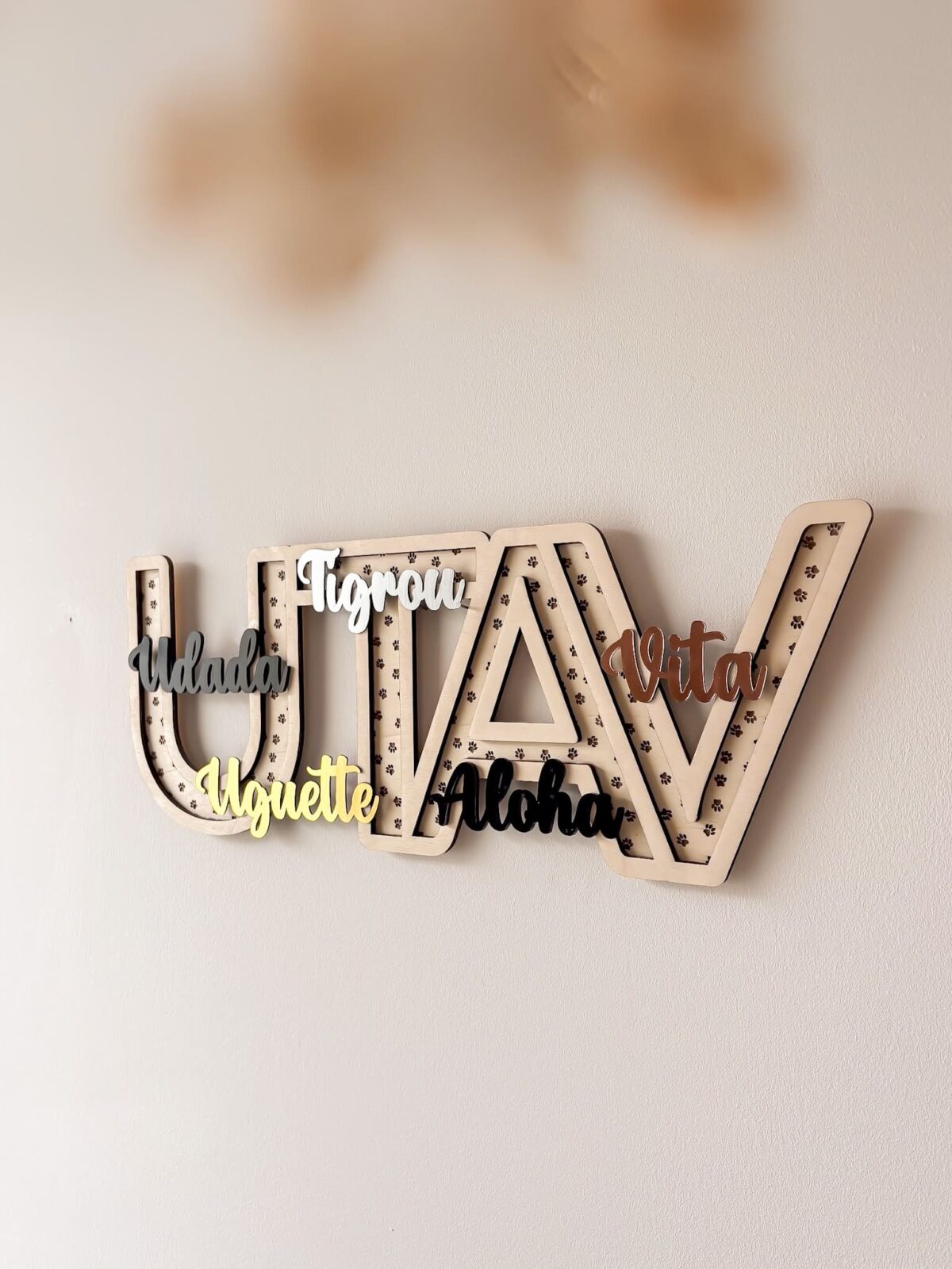 Que ce soit pour décorer le salon avec les initiales de la famille, le bureau avec un mot inspirant, ou une chambre d’enfant avec un prénom, je travaille sur mesure pour vous. Vous choisissez les lettres, les motifs et la couleur du plexi.