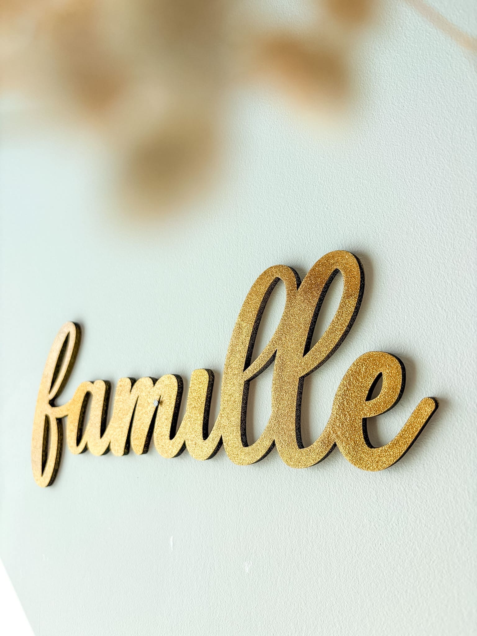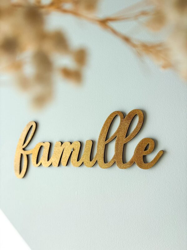 - La finition paillette dorée : Prêt à poser ! J’applique une finition scintillante et élégante pour apporter une touche de magie et de lumière à votre décoration murale.