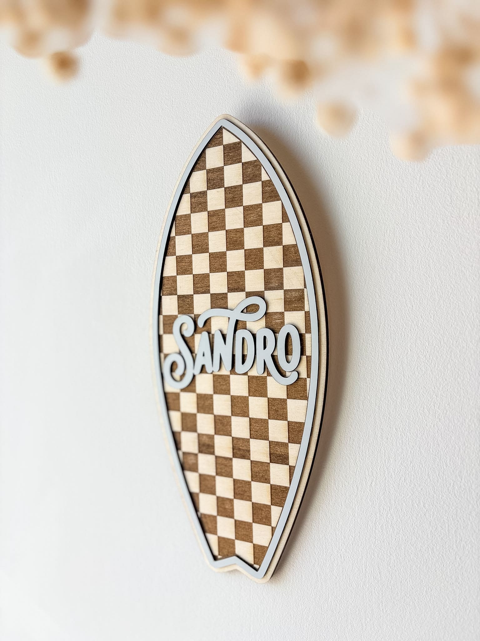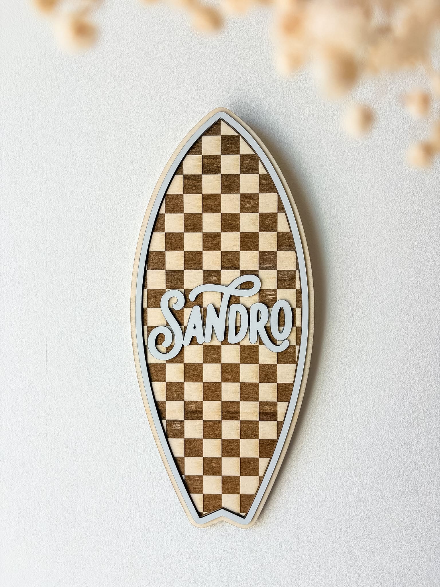 Faites entrer le soleil et l’esprit glisse dans votre intérieur avec ma planche de surf en bois personnalisée ! Ce superbe contraste entre l’authenticité du bois gravé et l’éclat coloré du plexi crée un effet 3D magnifique. C’est la décoration idéale pour habiller la porte d’une chambre d’enfant, personnaliser un coin bureau ou apporter une ambiance « beach house » à votre salon.